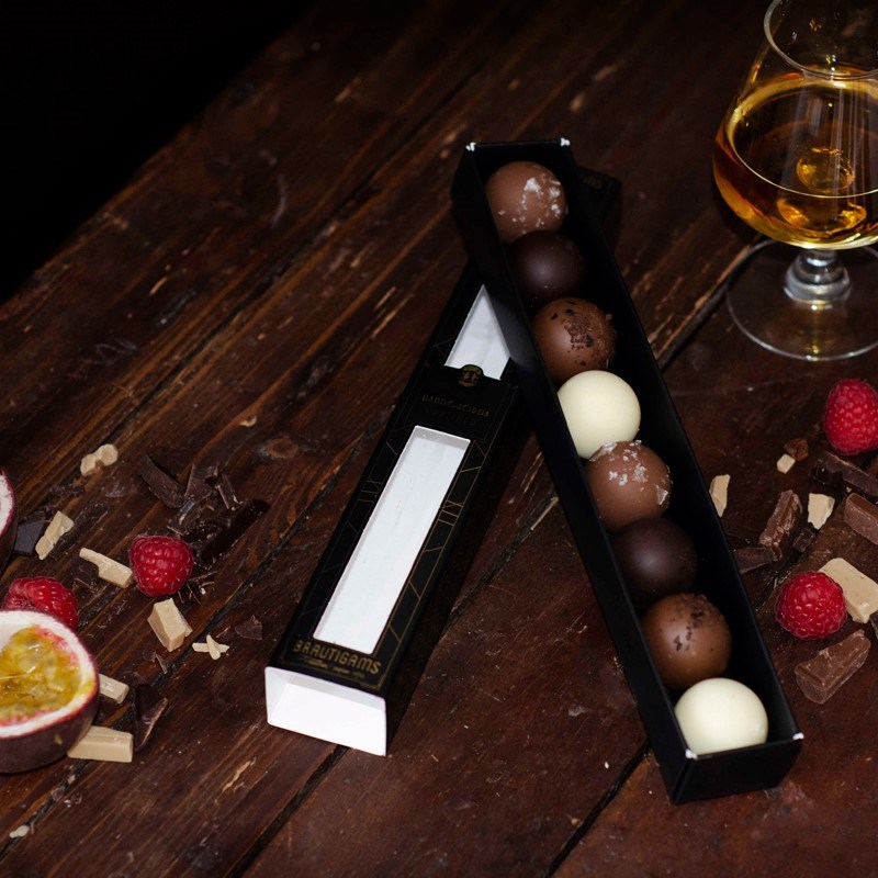 Pralinaskarna från Bräutigams innehåller en fin mix av mörka, ljusa och vita handgjorda praliner.
